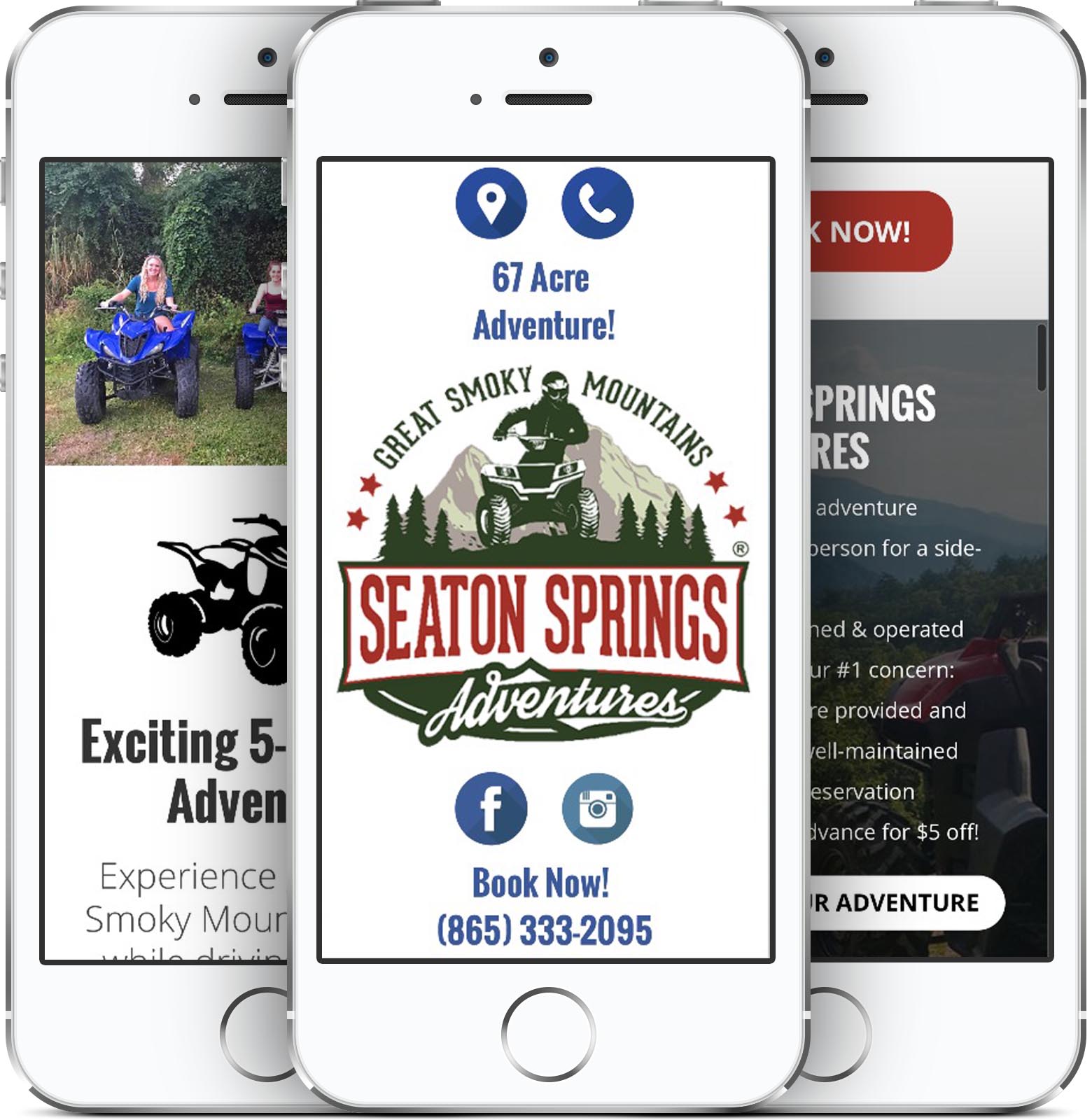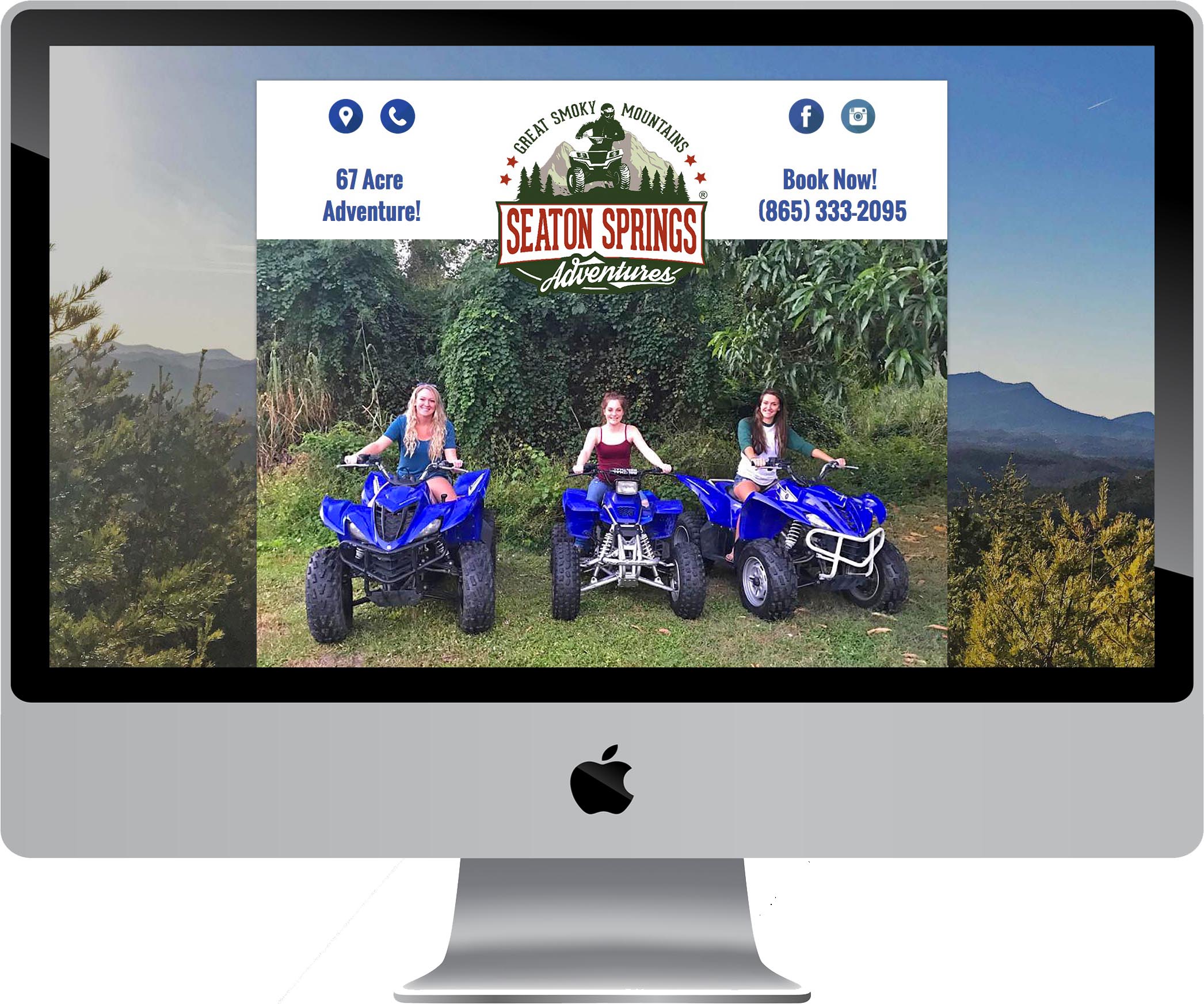 Seaton Springs Adventures is a modern, mobile-friendly and animated website. The design's animations are powered by the latest CSS3 web technologies. Visitors are greeted with a quick loading animation involving 3 ATVs zipping across the screen. This one-page website is full of micro-animations on clickable buttons and elements. The design fits mobile devices and tablets perfectly. Speed is important for both user experience (UX) and search engine ranking (SEO). Seaton Springs' website loads in less than 3 seconds! Pioneer Media actively provides web hosting, domain registration, email hosting, analytics reports, SEO, updates, backups and more for Seaton Springs Adventures.